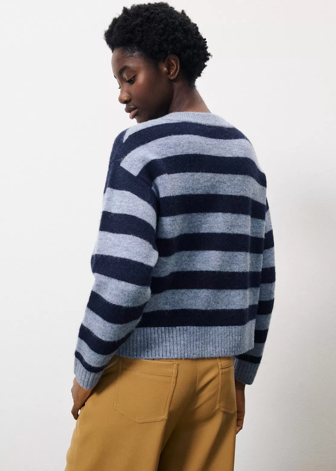 • Cardigan rayé col rond• Contient de la laine et de l’alpaga• Fit loose